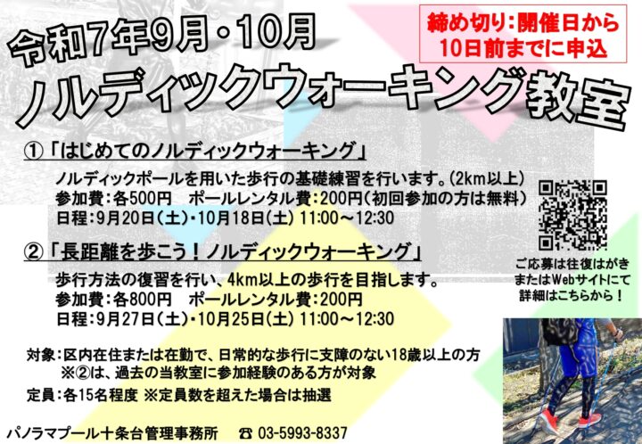 9,10月に開催いたします、ノルディックウォーキングの参加者を募集しています。