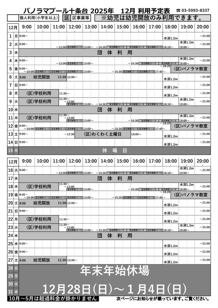 平素はパノラマプール十条台をご利用いただき、まことにありがとうございます。